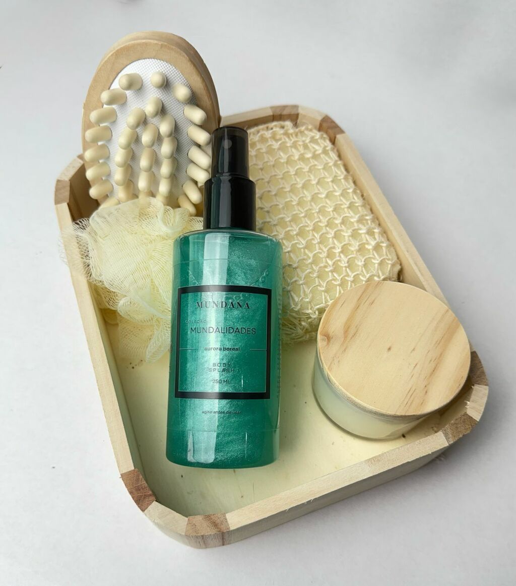 Feito com ingredientes 100% naturais, o Body Splash - Aurora Boreal é livre de parabenos e aditivos agressivos. Ingredientes naturais hidratam a pele de maneira suave e equilibrada, respeitando sua delicadeza. Com sua composição rica em extratos vegetais e minerais, o body splash ajuda a manter a pele nutrida e fresca, sem ressecar ou causar irritações. O uso regular de produtos naturais para a pele contribui para um equilíbrio saudável, mantendo sua pele macia, hidratada e protegida contra os danos ambientais.